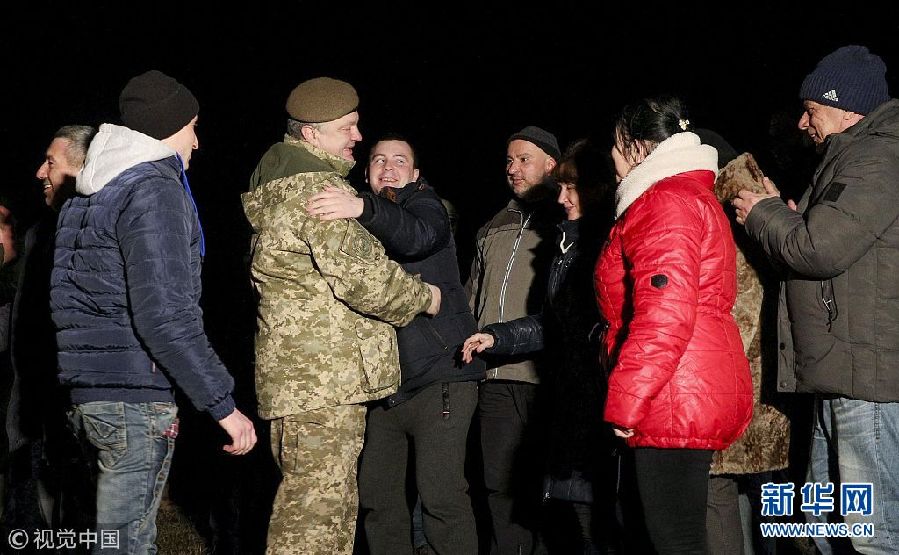 12月27日,烏克蘭哈爾科夫,獲釋戰(zhàn)俘抵達哈爾科夫。烏克蘭政府軍與東部民間武裝當日舉行了大規(guī)模的交換戰(zhàn)俘行動。(圖片來源:視覺中國)