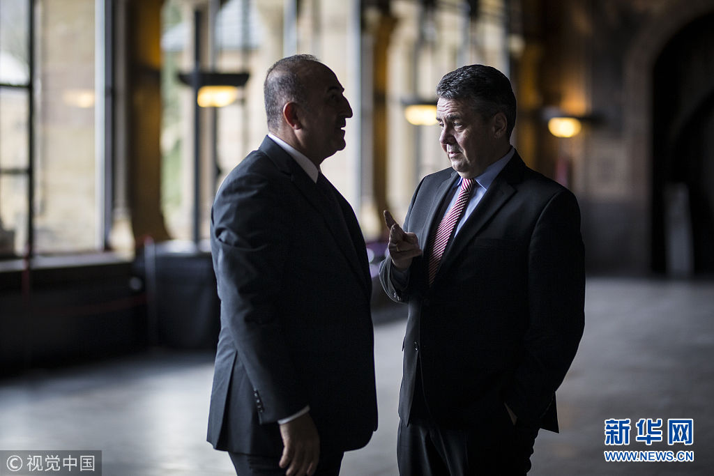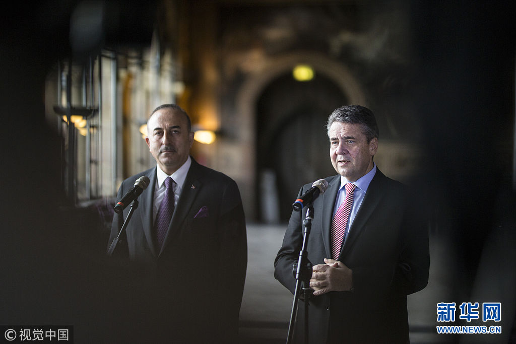 當(dāng)?shù)貢r間2018年1月6日,德國戈斯拉爾,德國外交部長加布里爾與土耳其外交部長梅夫呂特·恰武什奧盧發(fā)表聯(lián)合聲明。(圖片來源:視覺中國)