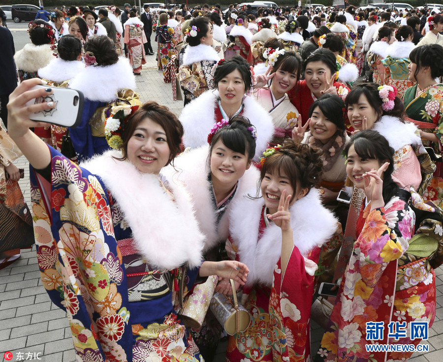 日本和服妹子出席“成人節(jié)”慶祝儀式 開(kāi)心玩自拍