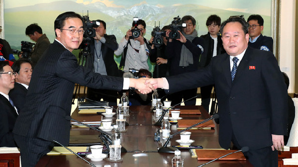 當?shù)貢r間9日10時(北京時間9時),韓國和朝鮮代表在板門店韓方一側(cè)“和平之家”開始舉行高級別會談,討論朝方派代表團參加平昌冬奧會、南北關(guān)系改善等議題。這是2015年12月韓朝副部長級會談之后雙方首次舉行政府間會談。