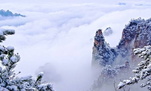 張家界武陵源現(xiàn)冰雪峰林 游人享“南國雪色”