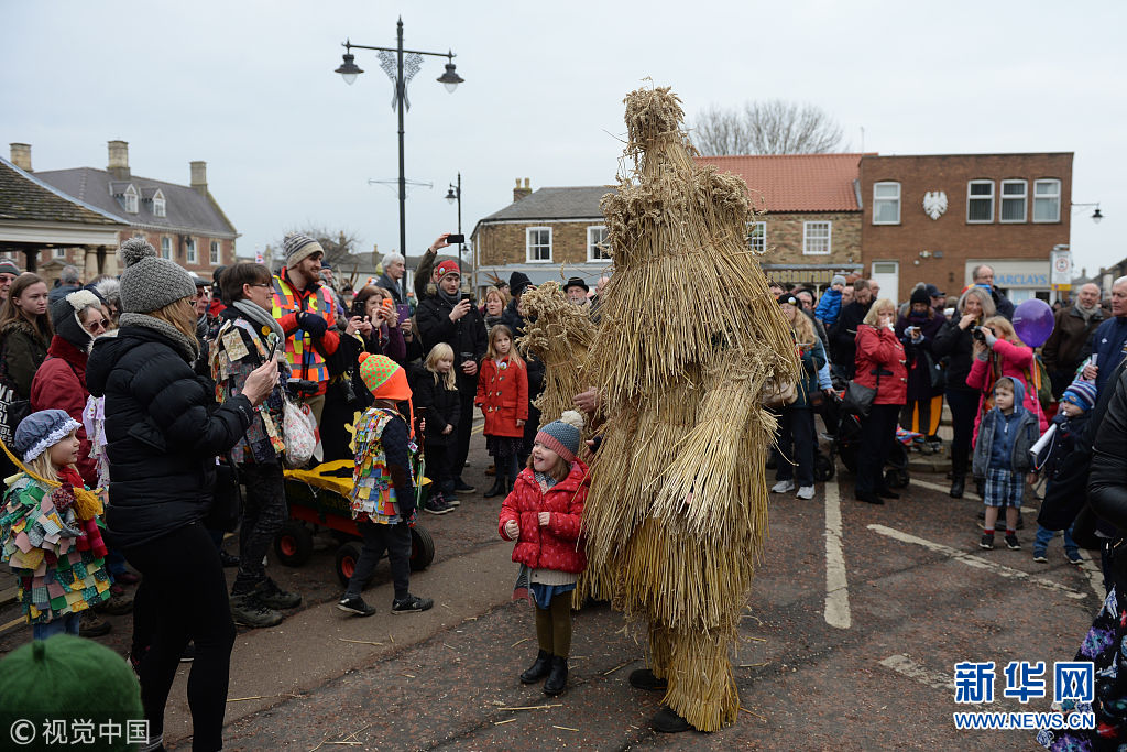 英國小鎮(zhèn)慶祝“稻草熊”節(jié) 民眾跟隨草人盡情舞動(dòng)