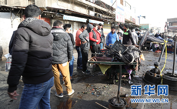 1月15日,在伊拉克首都巴格達(dá),人們聚集在爆炸現(xiàn)場(chǎng)附近。 新華社發(fā)(哈利勒·達(dá)伍德攝)