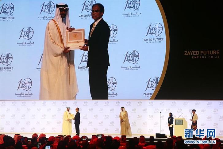 出席開(kāi)幕式的阿聯(lián)酋阿布扎比王儲(chǔ)穆罕默德·本·扎耶德·阿勒納哈揚(yáng)為“扎耶德未來(lái)能源獎(jiǎng)”各獎(jiǎng)項(xiàng)得主頒獎(jiǎng),其中終身成就獎(jiǎng)授予了諾貝爾物理學(xué)獎(jiǎng)得主、美籍日裔科學(xué)家中村修二。中國(guó)深圳亞迪學(xué)校以新能源清掃船創(chuàng)意入圍亞洲區(qū)高中獎(jiǎng)?lì)悇e,但該獎(jiǎng)項(xiàng)最終由巴林的一所中學(xué)摘得。
