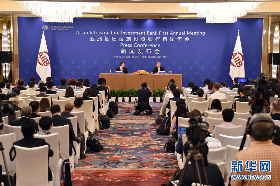 亞洲基礎(chǔ)設(shè)施投資銀行首屆年會(huì)在北京舉行新聞發(fā)布會(huì)(2016年6月25日攝)。新華社記者 李鑫 攝