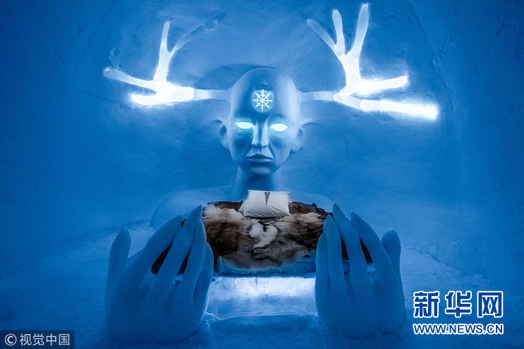 當?shù)貢r間2018年1月12日,瑞典朱卡斯亞維村,瑞典冰雪酒店已在今年冬季重新開放,來自17個國家的36位藝術(shù)家參與了設(shè)計。自1989年以來,酒店每年都會在位于北極圈以北200公里處的瑞典朱卡斯亞維村莊重建,位置靠近托爾納河河畔。今年,藝術(shù)家們使用3萬立方米的冰雪建造了冰雪酒店,用500噸晶瑩剔透的天然冰制作了玻璃和冰雪酒吧。酒店擁有35個設(shè)計獨特的豪華套房、一個冰雕禮堂和一個全新的兒童樂園。在主廳里,1000個手工拋光的冰晶被制作成引人注目的吊燈。在冰雕禮堂中,有200個手工雕刻的植物裝點著墻壁。(圖片來源:視覺中國)