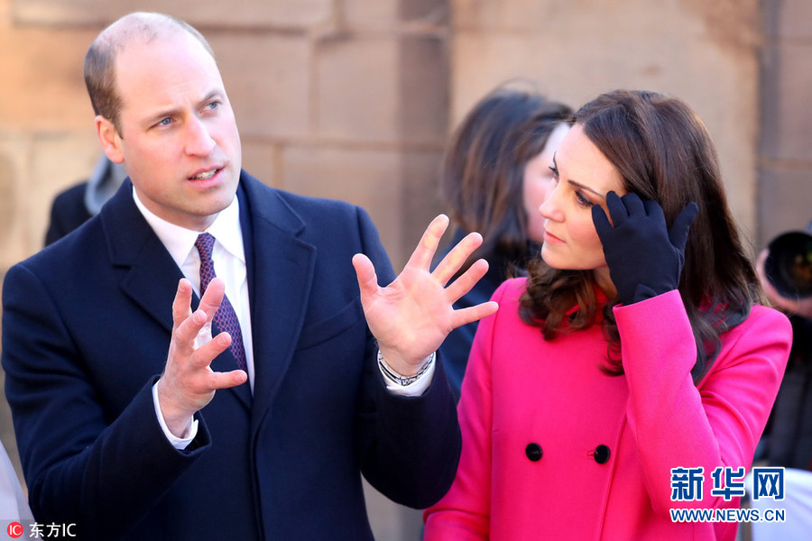 1月16日,英國西米德蘭茲郡考文垂,威廉王子夫婦造訪考文垂大教堂,凱特王妃一襲紅色大衣挺孕肚與人群熱情互動。(圖片來源:東方IC)