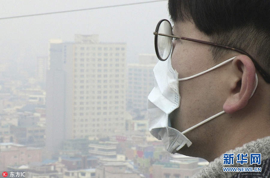 韓國多地出現(xiàn)重霧霾天氣 灰蒙一片能見度極低