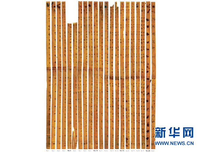 資料圖片:清華大學(xué)收藏的戰(zhàn)國竹簡《算表》,經(jīng)認證為“最早的十進制乘法表”。(吉尼斯世界紀錄供圖)