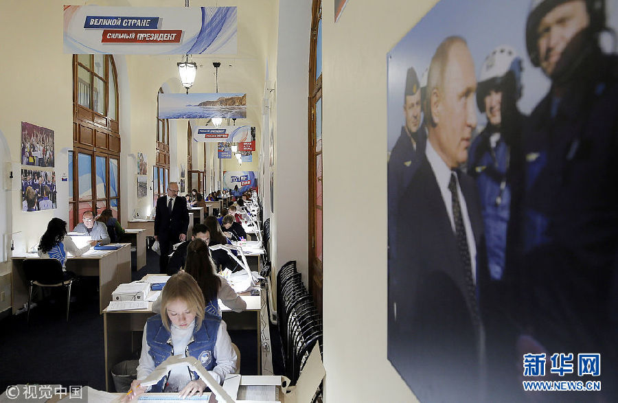 當(dāng)?shù)貢r(shí)間2018年1月17日,俄羅斯莫斯科,俄羅斯總統(tǒng)普京大選競(jìng)選總部的志愿者核查收集到的支持普京參選的簽名。(圖片來(lái)源:視覺(jué)中國(guó))