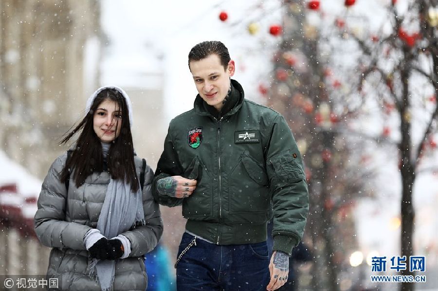 當(dāng)?shù)貢r間1月20日,俄羅斯莫斯科,民眾冒雪出行。(圖片來源:視覺中國)