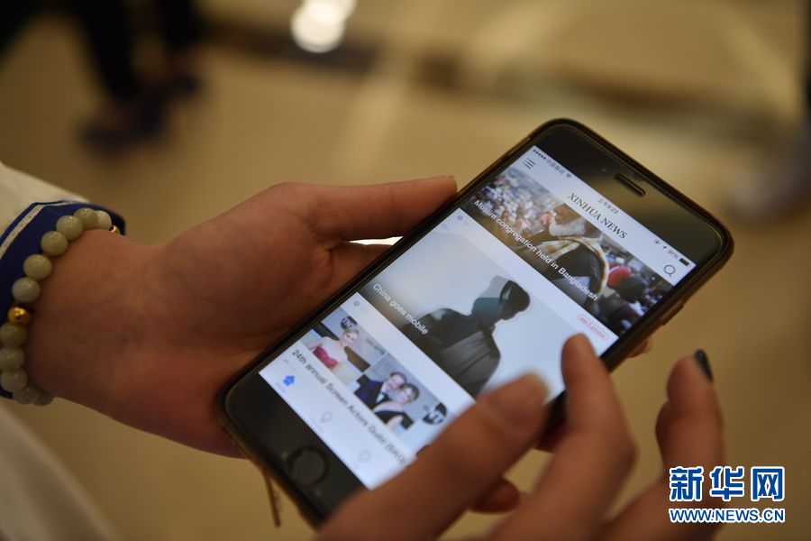 1月23日上午10:00,新華社英文客戶端上線發(fā)布會(huì)在總社大廈多功能廳舉行。圖為工作人員展示新華社英文客戶端。新華社記者 金良快攝