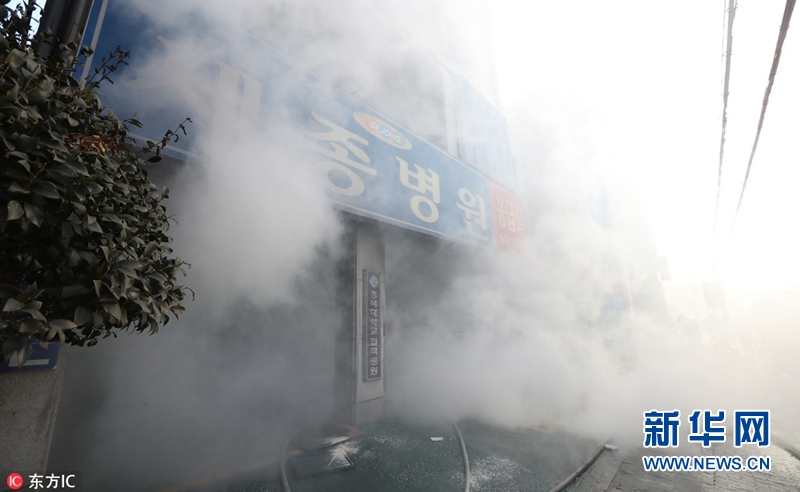 韓國慶尚南道密陽市一家醫(yī)院當?shù)貢r間26日上午發(fā)生火災。新華網(wǎng)發(fā)