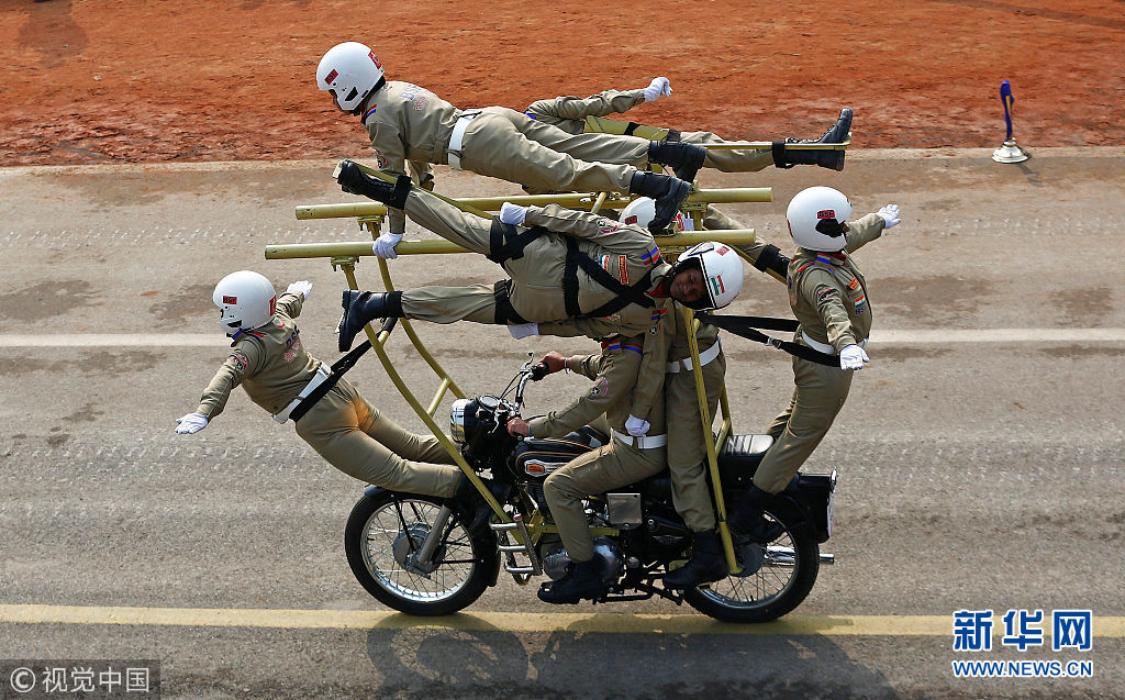 印度舉行閱兵游行慶祝第69個(gè)共和國(guó)日 摩托車隊(duì)再展“神技”