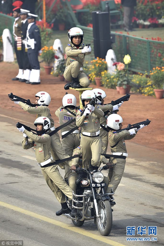 印度舉行閱兵游行慶祝第69個(gè)共和國(guó)日 摩托車隊(duì)再展“神技”