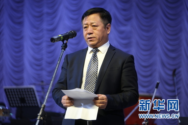 中國駐哈薩克斯坦大使張漢暉為音樂會致辭。新華網(wǎng)發(fā) (阿比洛夫攝)