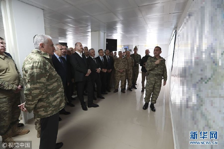 當(dāng)?shù)貢r(shí)間2月4日,土耳其哈塔伊,土耳其總理耶爾德勒姆趕往前線指揮所視察“橄欖枝”軍事行動(dòng)進(jìn)程。(圖片來源:視覺中國(guó))