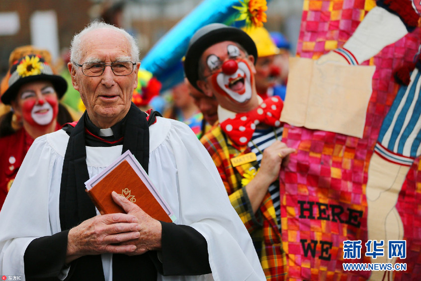 當(dāng)?shù)貢r間2月4日,英國倫敦,人們扮成小丑的模樣聚集在圣三一教堂,為英國“小丑之父”約瑟夫-格里馬爾迪(1778-1837)舉辦紀(jì)念會。(圖片來源:東方IC)