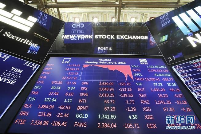 這是2月5日在美國(guó)紐約證券交易所拍攝的電子顯示屏。 新華社記者王迎 攝