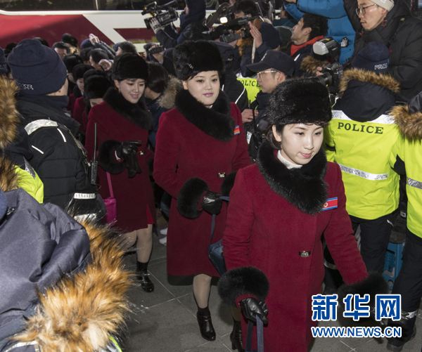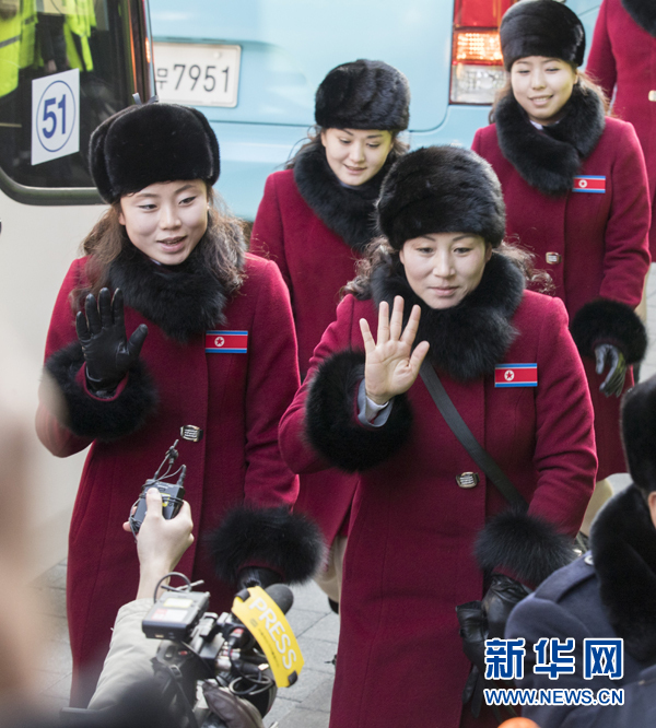 2月7日,朝鮮拉拉隊(duì)成員乘車到達(dá)韓國(guó)江原道麟蹄郡。當(dāng)日,參加平昌冬奧會(huì)的朝鮮拉拉隊(duì)、跆拳道示范團(tuán)、記者團(tuán)和民族奧林匹克委員會(huì)官員等一行280人經(jīng)由京義線陸路抵達(dá)韓國(guó)境內(nèi)。新華社發(fā)(李相浩攝)