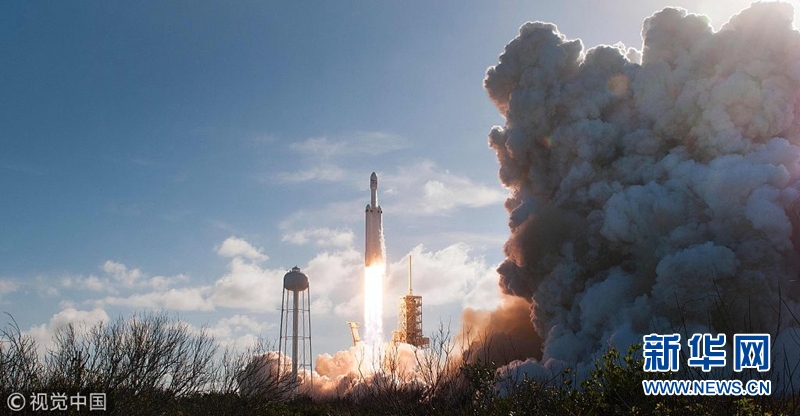 當(dāng)?shù)貢r間2018年2月6日,美國佛州卡納維拉爾角,美國重型運載火箭“獵鷹重型”6日攜帶一輛特斯拉跑車發(fā)射升空。(圖片來源:視覺中國)