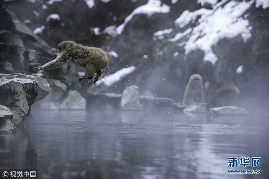 2018年2月18日訊(具體拍攝時(shí)間不詳),日本長(zhǎng)野縣地獄谷,活潑的猴子在溫泉中跳進(jìn)跳出,嬉戲休息。地獄谷野猿公苑地處長(zhǎng)野縣的志賀高原,由于這里的噴泉不斷地從地殼里噴射出蒸汽,故被稱為“地獄谷”。冬季,這里最低氣溫低于零下10℃,屬于極寒地帶。(圖片來(lái)源:視覺(jué)中國(guó))