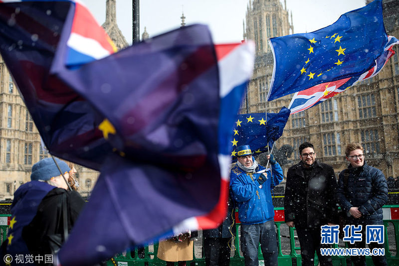 英國(guó)民眾議會(huì)外舉歐盟旗幟抗議“脫歐”