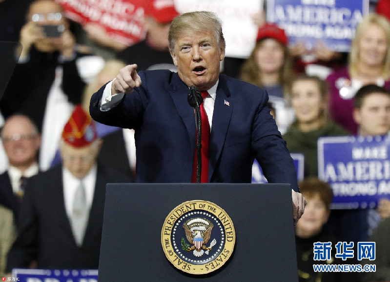 特朗普為共和黨聯(lián)邦議員競(jìng)選站臺(tái)演講 表情包滿天飛