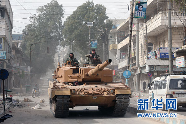 3月24日,在敘利亞阿夫林,一輛土耳其坦克在城區(qū)駛過。新華社發(fā)