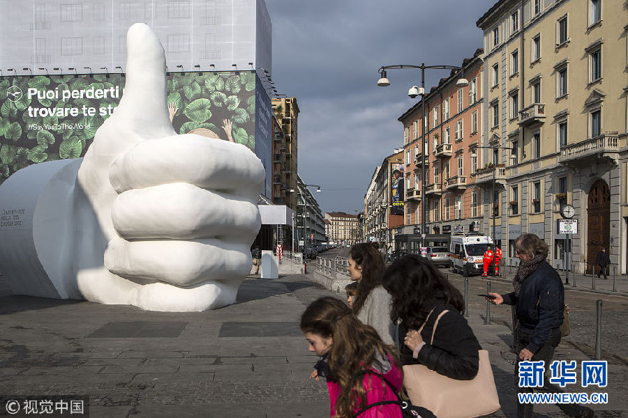 當(dāng)?shù)貢r(shí)間2018年3月25日,意大利米蘭,一座在社交媒體上代表“點(diǎn)贊”的雕塑出現(xiàn)在加里波第門(mén)旁。 (圖片來(lái)源:視覺(jué)中國(guó))