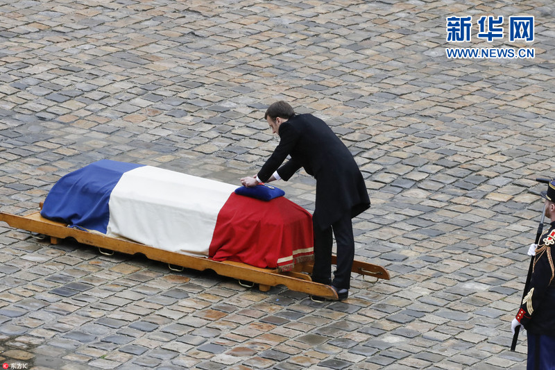 3月28日,法國巴黎,英勇殉職的法國憲兵中校貝爾特拉姆(Arnaud Beltrame)葬禮在法國榮軍院舉行。貝爾特拉姆在法國特雷布鎮(zhèn)恐怖襲擊事件中舍身替換人質(zhì)而殉職。法國前總統(tǒng)奧朗德、薩科齊等多名政要出席貝爾特拉姆的國葬。法國總統(tǒng)馬克龍為其授予法國榮譽軍團勛章。