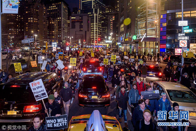美國(guó)紐約舉行百人大游行 抗議加州警方槍殺手無(wú)寸鐵黑人男子