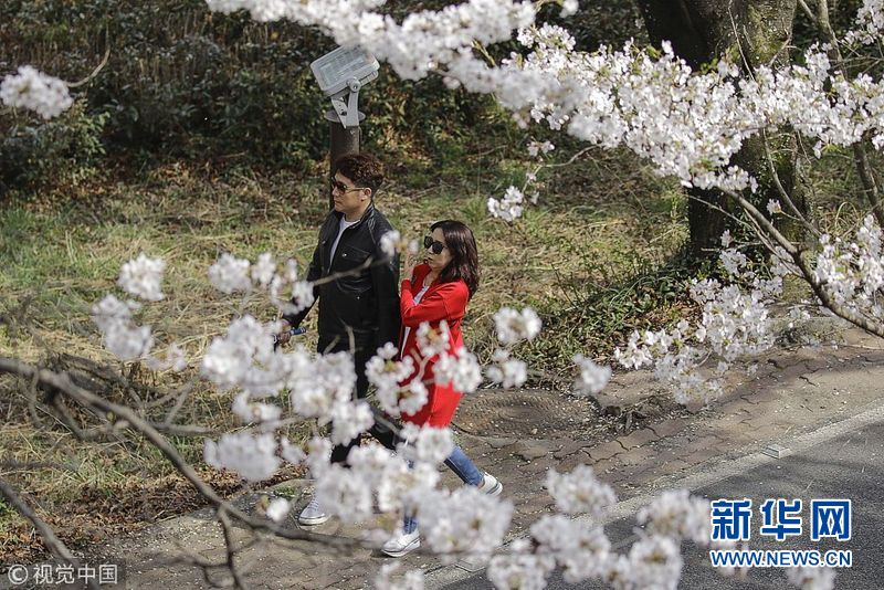 韓國(guó)櫻花盛放 吸引游客觀賞