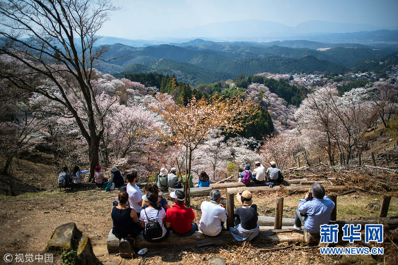 4月3日,日本奈良吉野,當(dāng)?shù)貦鸦ㄊ⒎?,吸引眾多游客前來觀賞。(圖片來源:視覺中國(guó))