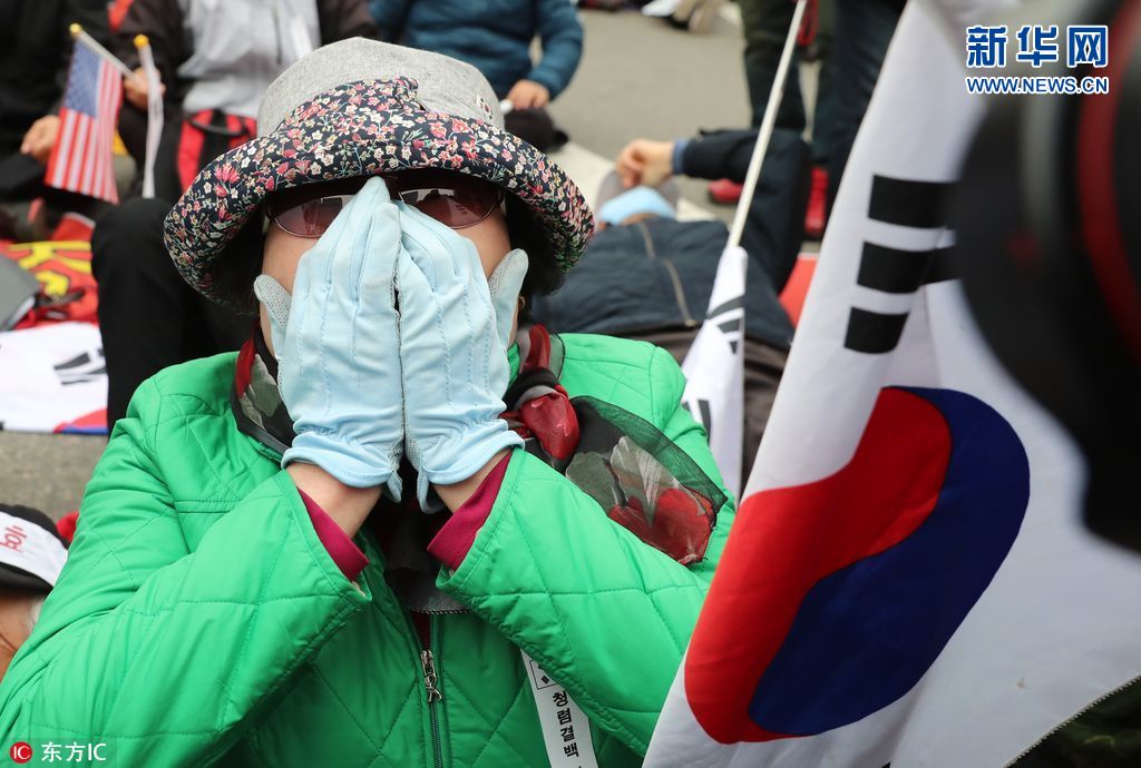 當(dāng)?shù)貢r(shí)間2018年4月6日,韓國首爾,在首爾中央地方法院前,舉行集會(huì)的韓國前總統(tǒng)樸槿惠的支持者得知樸槿惠一審獲刑24年傷心落淚。據(jù)報(bào)道,首爾中央地方法院對(duì)韓國前總統(tǒng)樸槿惠作出一審宣判,判處其有期徒刑24年,罰款180億韓元(約合人民幣1.06億元)。(圖片來源:東方IC)