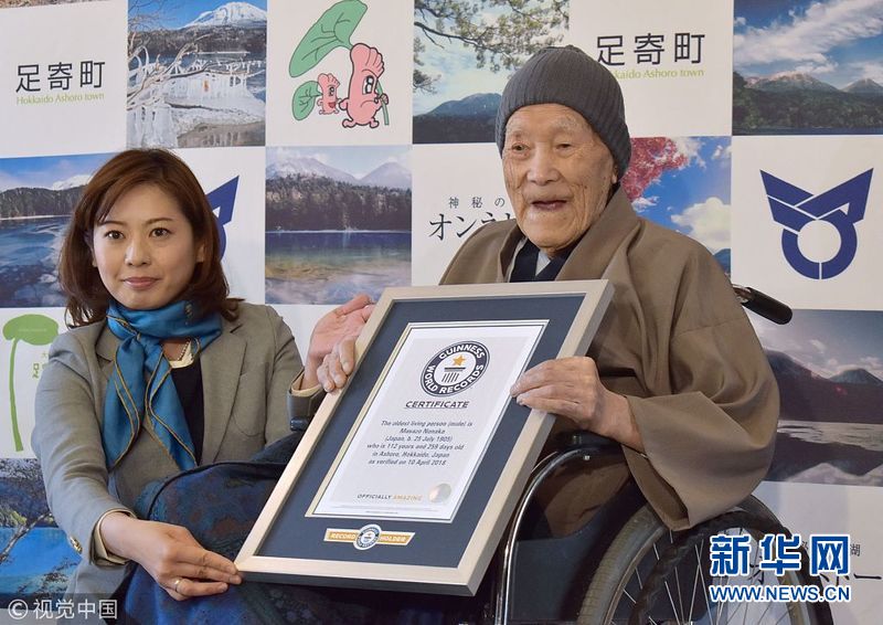 4月10日,日本足寄,日本男子Masazo Nonaka以112歲259天的年齡,獲得吉尼斯認(rèn)證的世界目前在世年齡最長(zhǎng)的男性。 (圖片來(lái)源:視覺(jué)中國(guó))