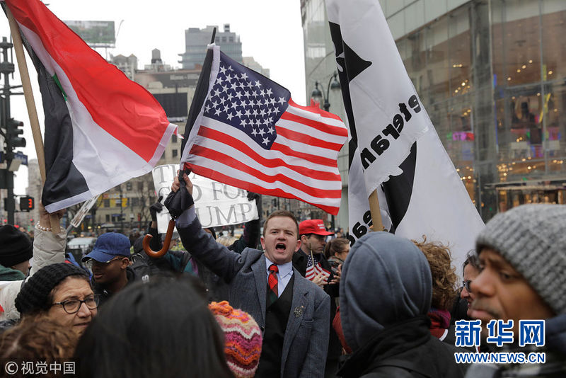 4月15日,美國(guó)紐約,民眾舉行反戰(zhàn)游行,抗議美英法聯(lián)軍襲擊敘利亞。(圖片來源:視覺中國(guó))