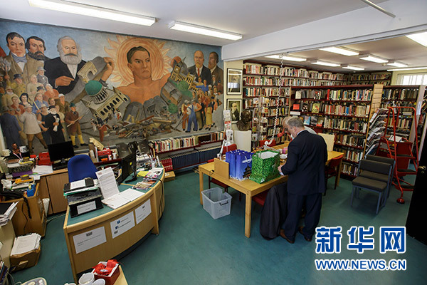 戈登帶領(lǐng)記者參觀圖書館二樓的閱覽室、一樓的會(huì)議室,以及收藏重要資料的地下檔案室。一排排書架上,整齊擺放著19世紀(jì)50年代以來各國(guó)出版的馬克思、恩格斯、列寧等革命導(dǎo)師的著作以及馬克思主義研究書籍。