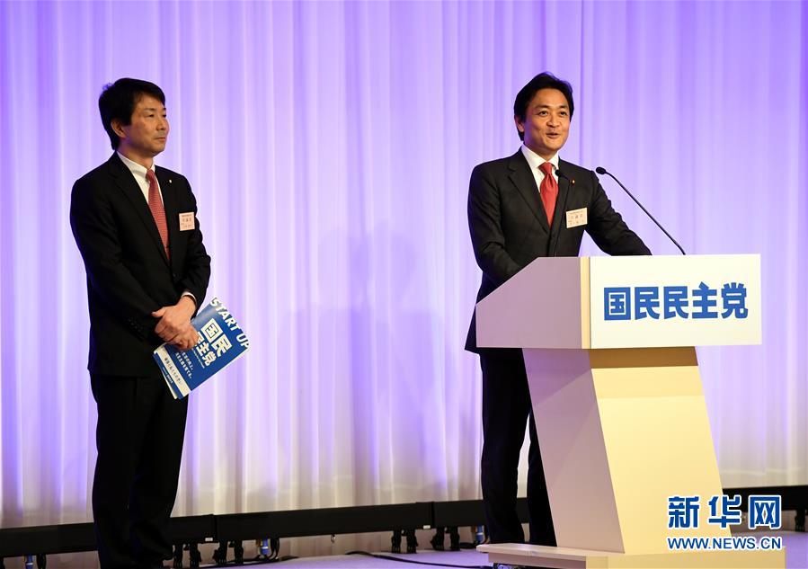 5月7日,日本在野黨希望之黨黨首玉木雄一郎(右)在東京舉行的國民民主黨建黨大會(huì)上講話。新華社記者馬平攝