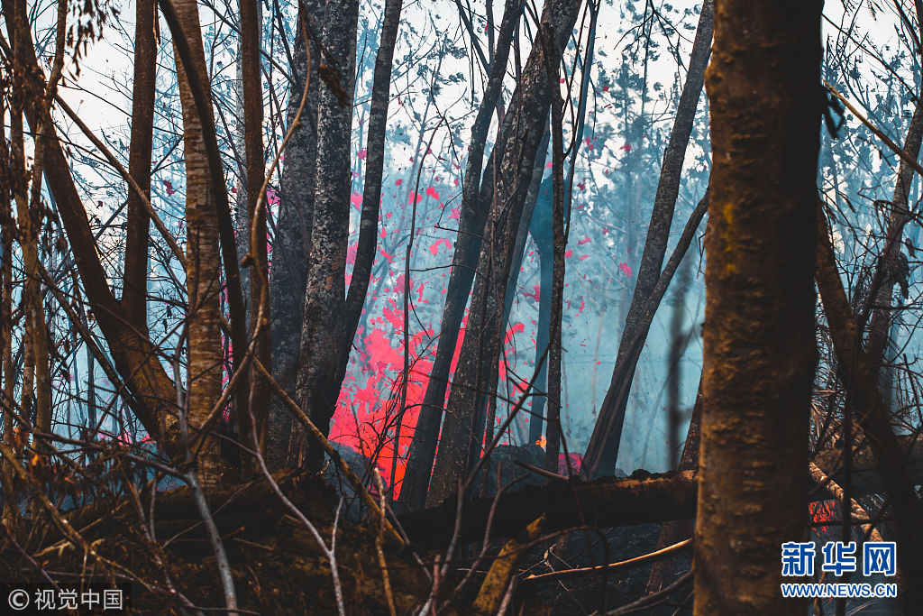 5月13日,美國夏威夷,基拉韋厄火山仍處于持續(xù)噴發(fā)的狀態(tài),火山周圍又出現(xiàn)了新的噴發(fā)裂縫。(圖片來源:視覺中國)