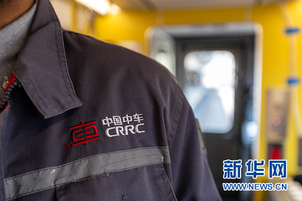 這是5月15日在美國馬薩諸塞州梅德福德惠靈頓站拍攝的中車長客為波士頓橙線地鐵“量身訂制”的首批車輛上中車長客員工制服上的標(biāo)識(shí)。新華社記者 李木子 攝