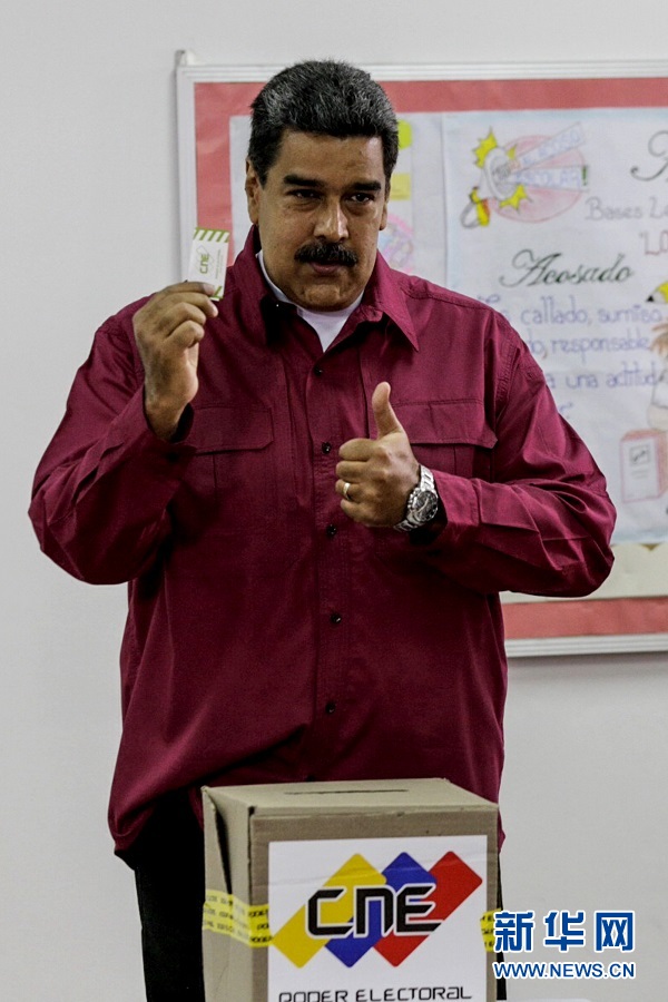 5月20日,委內(nèi)瑞拉國(guó)家選舉委員會(huì)宣布,現(xiàn)任總統(tǒng)馬杜羅贏得本次總統(tǒng)選舉。這是5月20日,馬杜羅在加拉加斯的一處投票點(diǎn)投票的資料照片。 新華社發(fā)(鮑里斯·貝爾加拉攝)