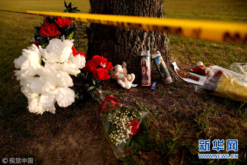 美國民眾獻(xiàn)花悼念圣菲高中槍擊案遇難者