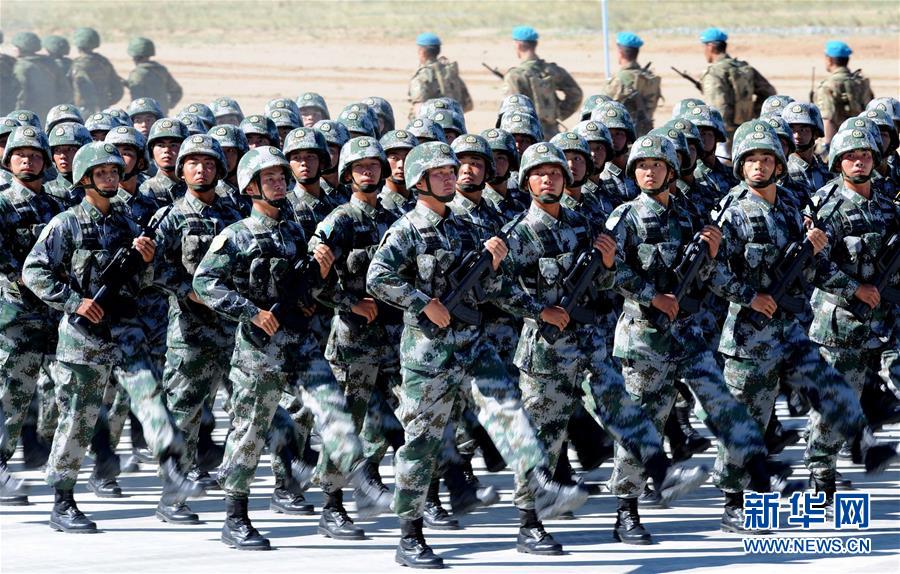 2014年8月24日,中國人民解放軍參演部隊在“和平使命—2014”上海合作組織成員國武裝力量聯(lián)合反恐軍事演習(xí)開始儀式上舉行分列式。17歲,恰如風(fēng)華正茂的青年。自世紀(jì)之初誕生于上海黃浦江畔,上海合作組織走過一段不平凡的發(fā)展歷程,和平穩(wěn)定能力不斷增強、發(fā)展動能不斷涌現(xiàn)、影響力不斷提升,邁入蓬勃發(fā)展新階段。17載風(fēng)雨同舟,上合組織走出了一條相互尊重、公平正義、合作共贏的新型國際關(guān)系之路。初夏6月,上合組織成員國元首理事會第十八次會議將在中國海濱城市青島舉行。弘揚“上海精神”、總結(jié)成功經(jīng)驗、共同規(guī)劃未來、推動擴員后的上合組織加強新老成員間的合作,青島峰會必將成為上合組織發(fā)展史上一座新的里程碑,續(xù)寫這一新型區(qū)域組織的新篇章。新華社記者 張領(lǐng) 攝