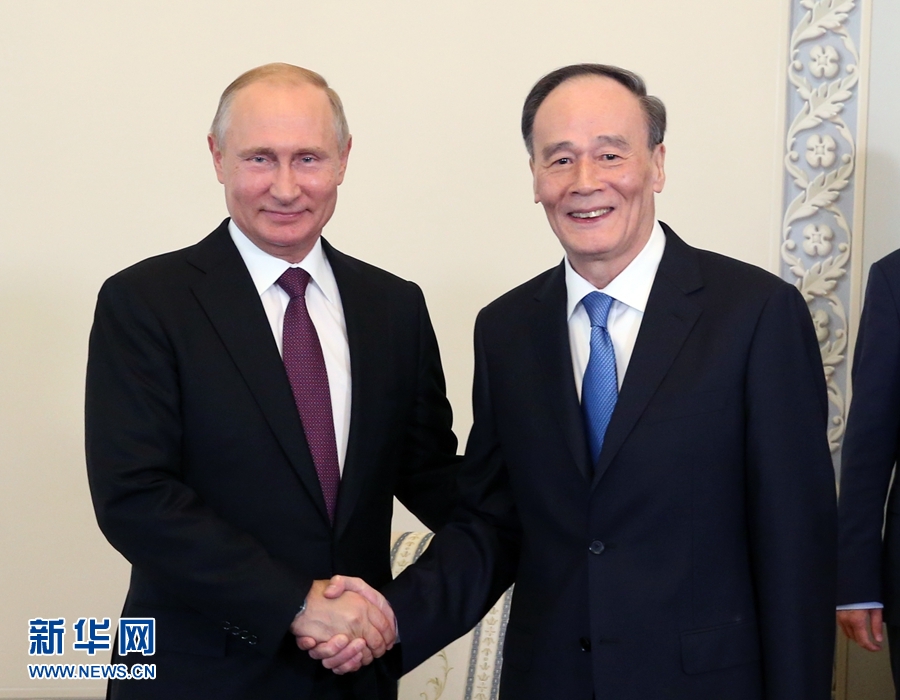 王岐山首先轉(zhuǎn)達(dá)了習(xí)近平主席對普京的誠摯問候和良好祝愿。他說,習(xí)近平主席高度重視中俄關(guān)系,珍視與普京總統(tǒng)的友誼,期待著同你再次會晤,共同規(guī)劃中俄關(guān)系和上海合作組織下一步發(fā)展。