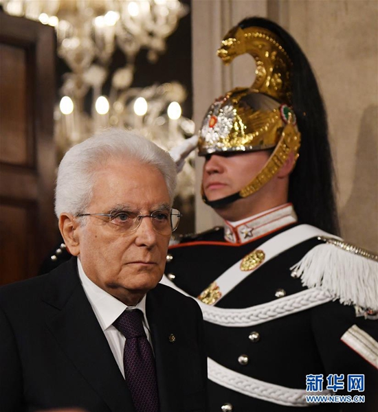 5月27日,在意大利首都羅馬,意總統(tǒng)馬塔雷拉出席新聞發(fā)布會(huì)。據(jù)當(dāng)?shù)孛襟w報(bào)道,意大利新任總理孔特27日晚間與總統(tǒng)馬塔雷拉會(huì)面并提交擬定的內(nèi)閣成員名單時(shí),馬塔雷拉否決了由意大利聯(lián)盟黨和五星運(yùn)動(dòng)力推的持疑歐立場(chǎng)的經(jīng)濟(jì)學(xué)家保羅·薩沃納出任財(cái)政部長(zhǎng)。孔特向總統(tǒng)提出放棄組閣任務(wù)請(qǐng)求,請(qǐng)求得到總統(tǒng)確認(rèn)。新華社發(fā)(阿爾貝托·林格里亞攝)