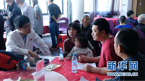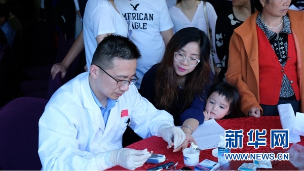中國援摩醫(yī)療隊(duì)醫(yī)生為在摩華僑華人體檢以及提供健康咨詢。新華社記者陳斌杰 攝