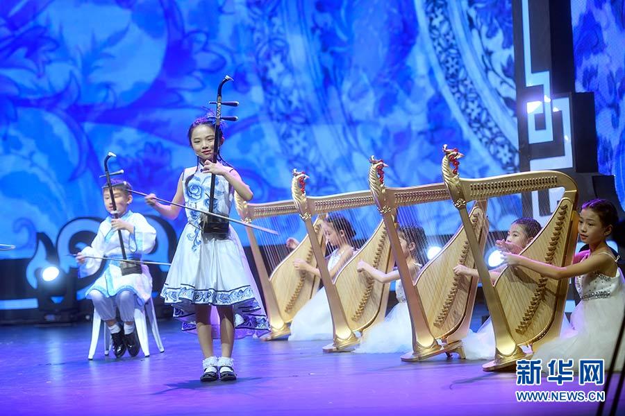2017年8月22日,來(lái)自中國(guó)的青少年在北京舉行的2017年上合組織成員國(guó)青少年藝術(shù)展演上表演民樂(lè)合奏《國(guó)風(fēng)》。新華社記者 金良快 攝