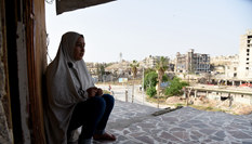 5月6日,在敘利亞阿勒頗,阿明娜坐在沒有圍欄的陽臺上。新華社發(fā)(胡馬姆·謝赫·阿里 攝)