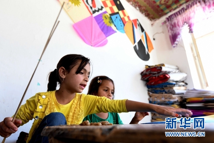 5月29日,在阿富汗首都喀布爾,希杰蘭(左)和妹妹在作坊內(nèi)扎風(fēng)箏。對于阿富汗這個飽經(jīng)戰(zhàn)火洗禮的國度,風(fēng)箏是人們難得的娛樂品。不少當(dāng)?shù)睾⒆佑H手制作風(fēng)箏貼補家用,可謂窮人的孩子早當(dāng)家。九歲的希杰蘭過去幾年共制作了上萬個風(fēng)箏。今年“六一”國際兒童節(jié)來臨之際,記者一行來到希杰蘭與家人位于喀布爾郊區(qū)的風(fēng)箏作坊。在略顯簡陋的房間內(nèi),大大小小、五顏六色的紙張隨處可見,不足20平方米的作坊在陽光下如同一個彩色世界。新華社記者 代賀 攝